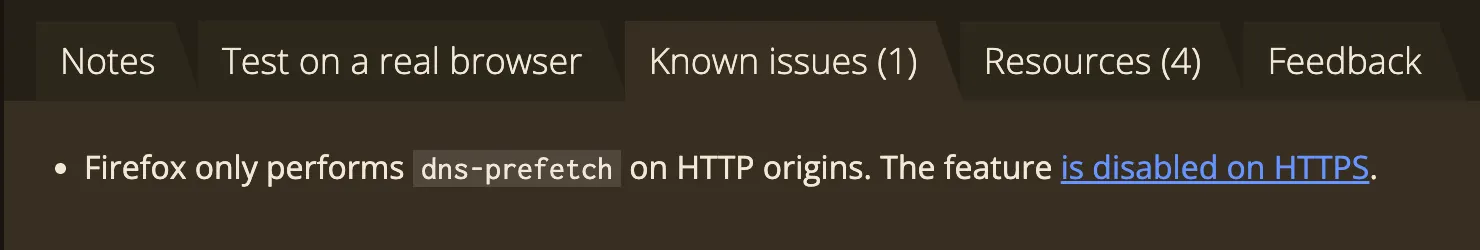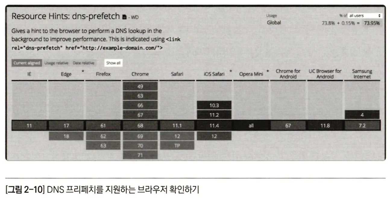 dns-prefetch의 현재 지원 범위